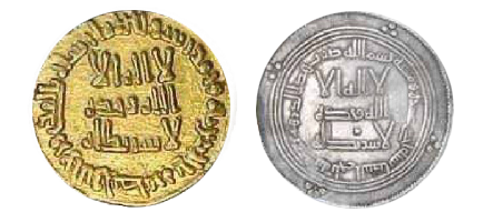 Abd al-Malik replaced the Roman and Persian inscriptions on the dinar and dirham, respectively, with the shahadah ‘There is no god but Allah; Muhammad is His messenger.’ and simplistic inscriptions based on Qur’anic verses.Imam Ghazali asserted that God created gold and silver as the true measure of value.These two coins were the monetary standard of the Islamic empire for centuries until the Ottoman caliphate collapsed in 1924.